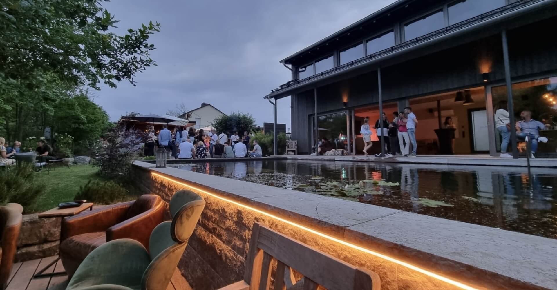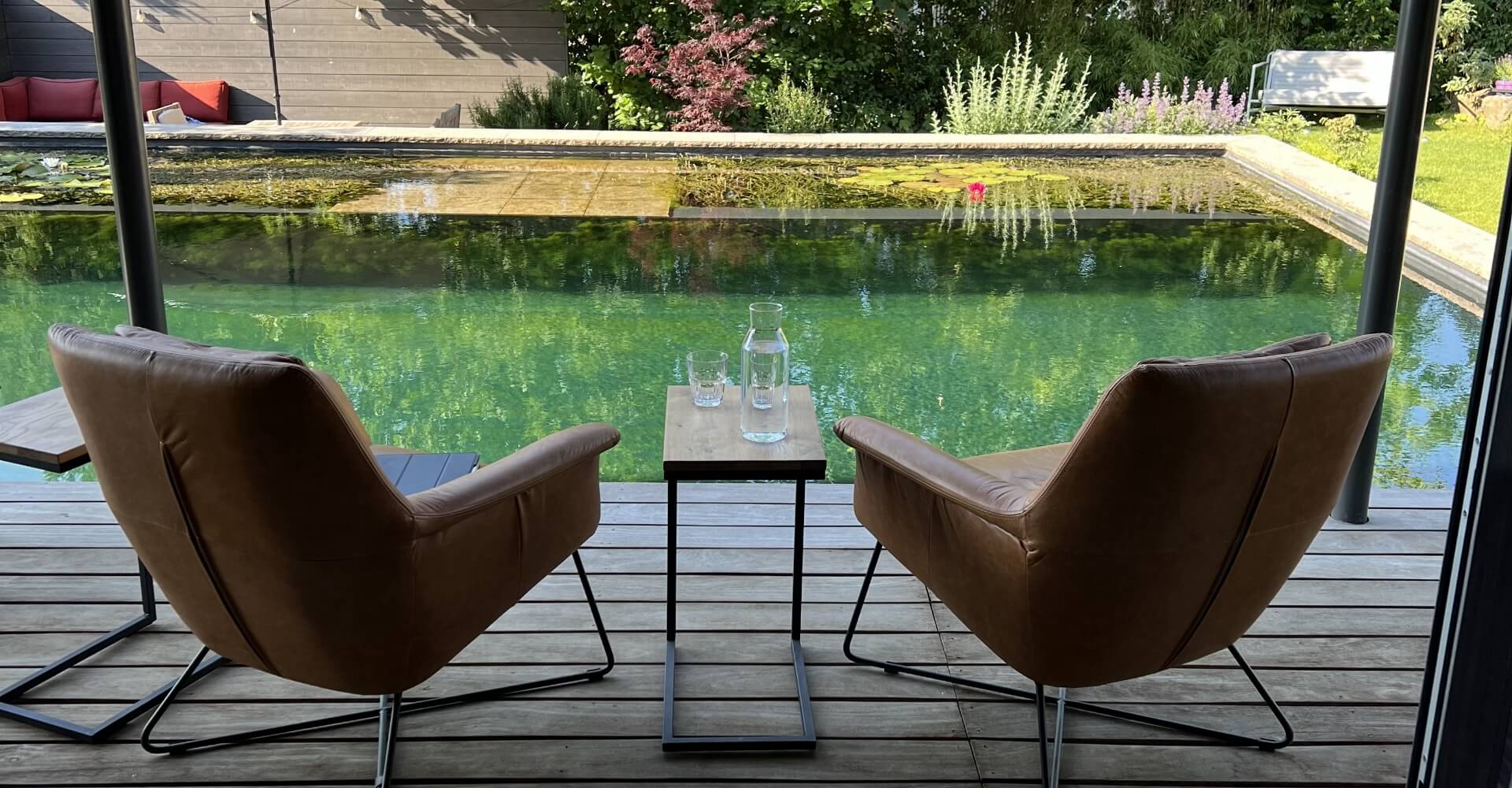 Beim Eintreten ins atelier FOX bist Du sofort in einer völlig anderen Welt. Mit Blick auf das Wasser des Naturpools beginnt das entspannte Arbeiten. Du tagst mit Kollegen und Kunden umgeben von Loft Architektur. Als Team findet ihr hier Inspiration und Ruhe und eine Workshop-Umgebung wie in einem Boutique Hotel.